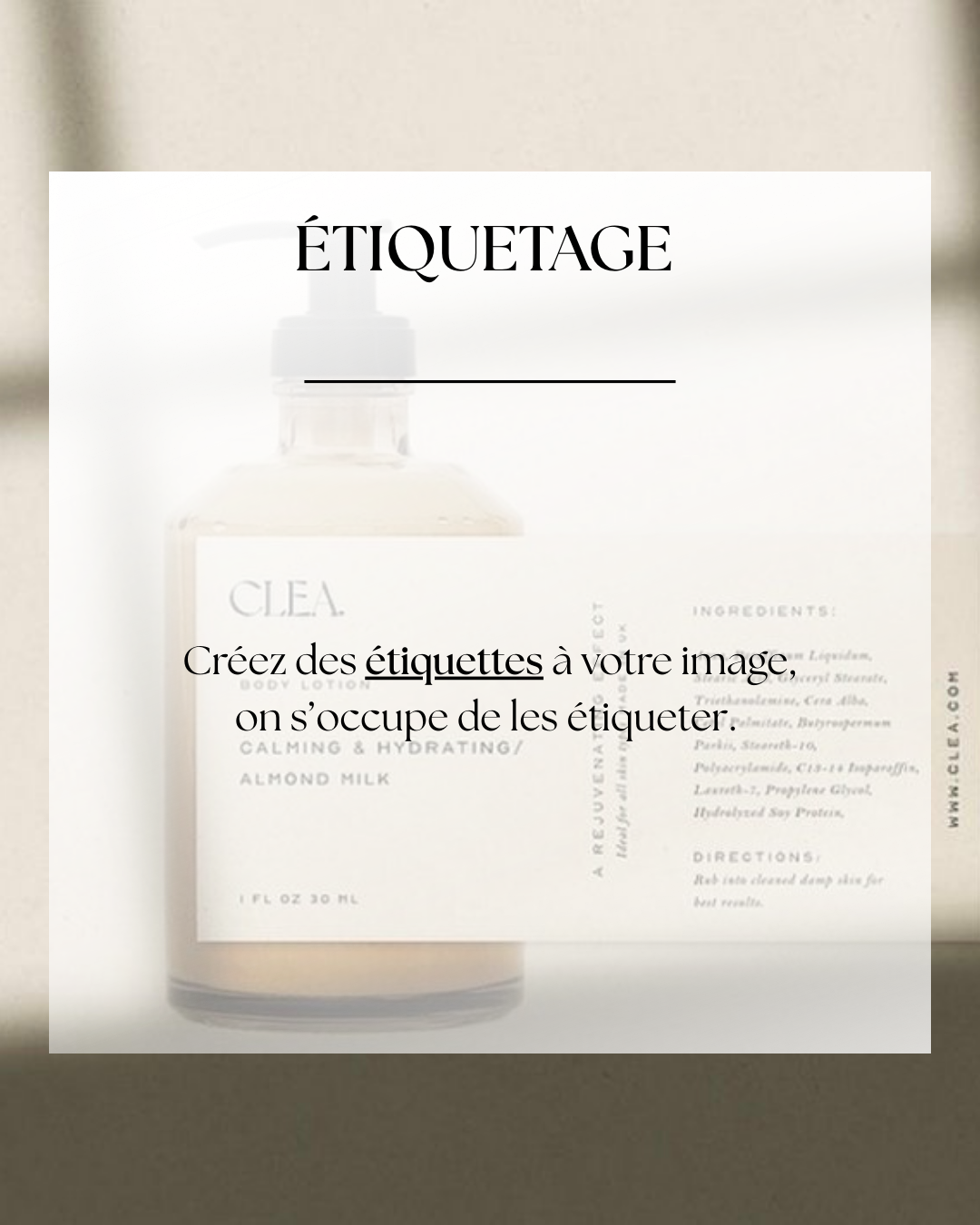 • Packaging et étiquetage conformes aux obligations légales (portail CPNP : Cosmetic Products Notification Portal)
